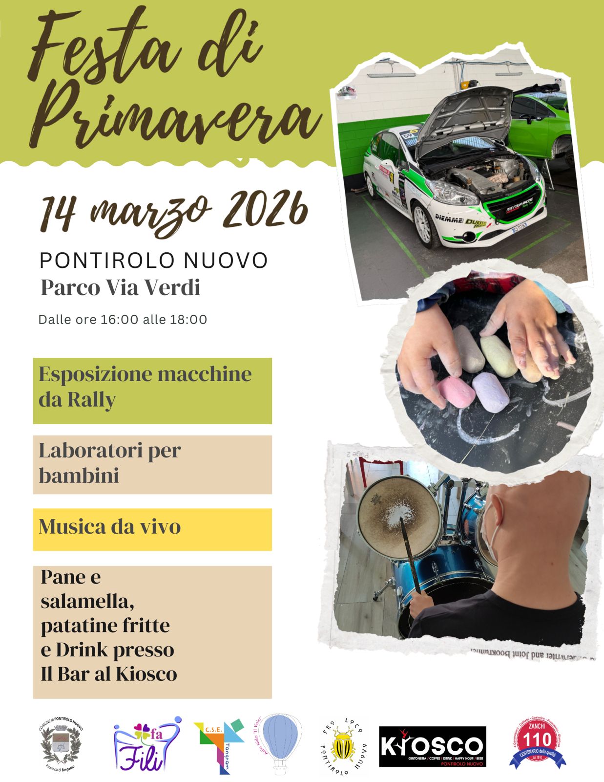 Festa di primavera in programma per sabato 14 marzo dalle 16 alle 18 presso il Parco di via Verdi, con attività per adulti e bambini e ristoro.